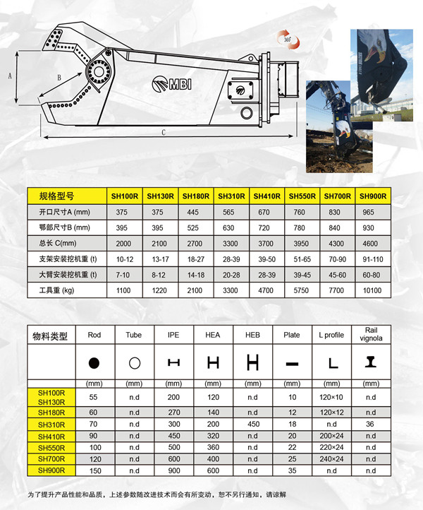 MBI鷹嘴剪SH系列產(chǎn)品,廢料鋼拆除專家,用于剪切廢鋼和工業(yè)拆除,這是最新的廢鋼剪切產(chǎn)品,在剪切力和強(qiáng)度方面是最強(qiáng)的,我們的產(chǎn)品表現(xiàn)一流,能滿足最挑剔的客戶需求